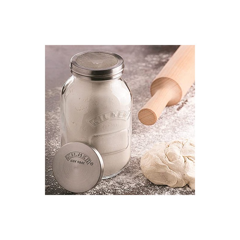 - Sift and store flour, cocoa, or baking soda with the Kilner Strainer Glass Set