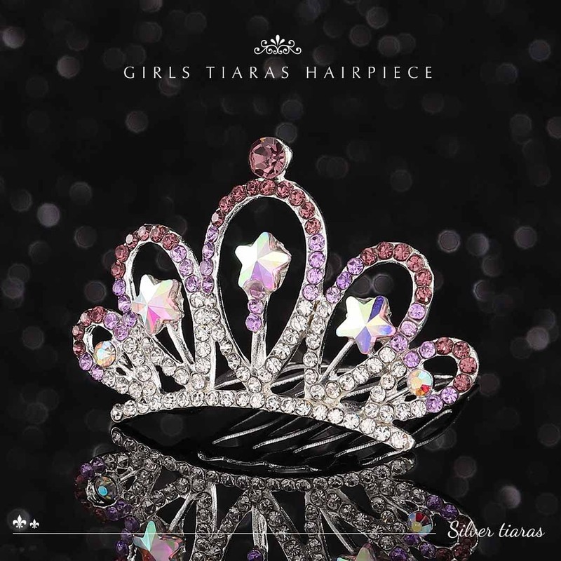 Kilshye Tiaras de princesa, peines plateados, corona pequeña, peines de estrella, diamantes de imitación, tiara para disfraz de graduación, coronas para niños (morado)