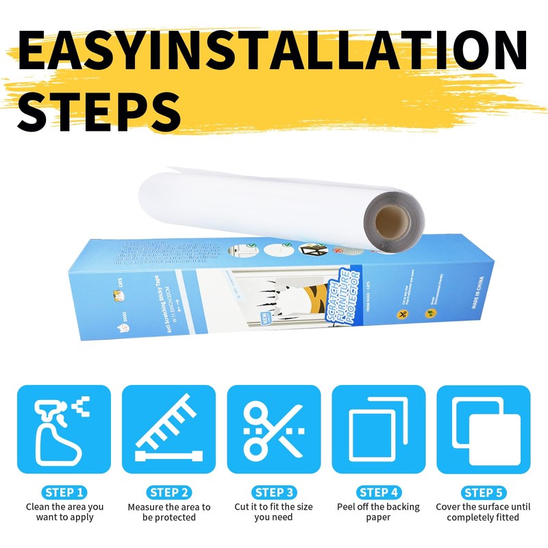 - EASY INSTALLATION: Simply measure, cut along the grid lines, peel off the back, and apply it to areas prone to cat scratches, removing the white backing paper. Then, you've equipped your furniture with an all-day personal protector! This is the easiest way to save your sofas, couches, leather furniture, beds, tables, counters, doorways, screen doors, and more! Warning: We do not recommend using this tape for cats on velvet sofas or leather furniture.