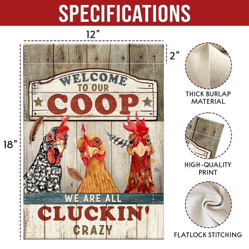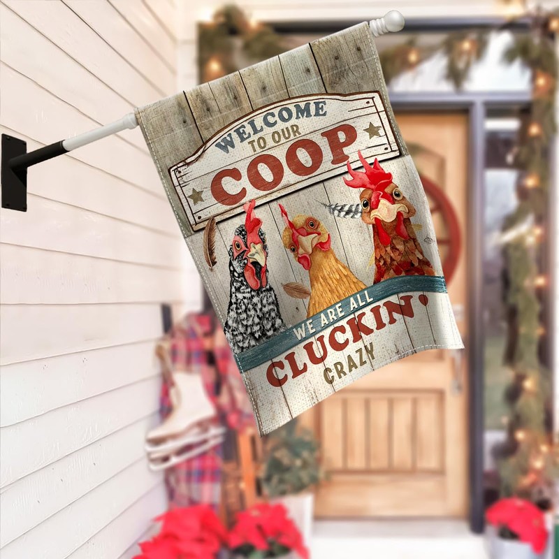 Kilyhome Garden Flag Christmas, Chicken Coop Yard Flag Markers, Welcome Banner for Rustic Farmhouse, Funny Chicken Gifts Sign for Women Men Farmer