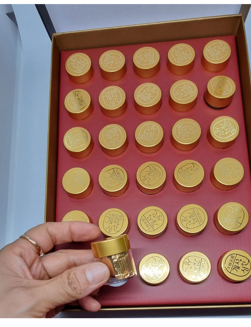 - 원(재)료명 및 함량: 침향분말 8% (인도네이시아산) 홍삼농축액 0.35% (국산6년근) 녹용추출 농축액 1% (뉴질랜드산) 산양산삼추출액(국산) 동충하초추출액(국산)