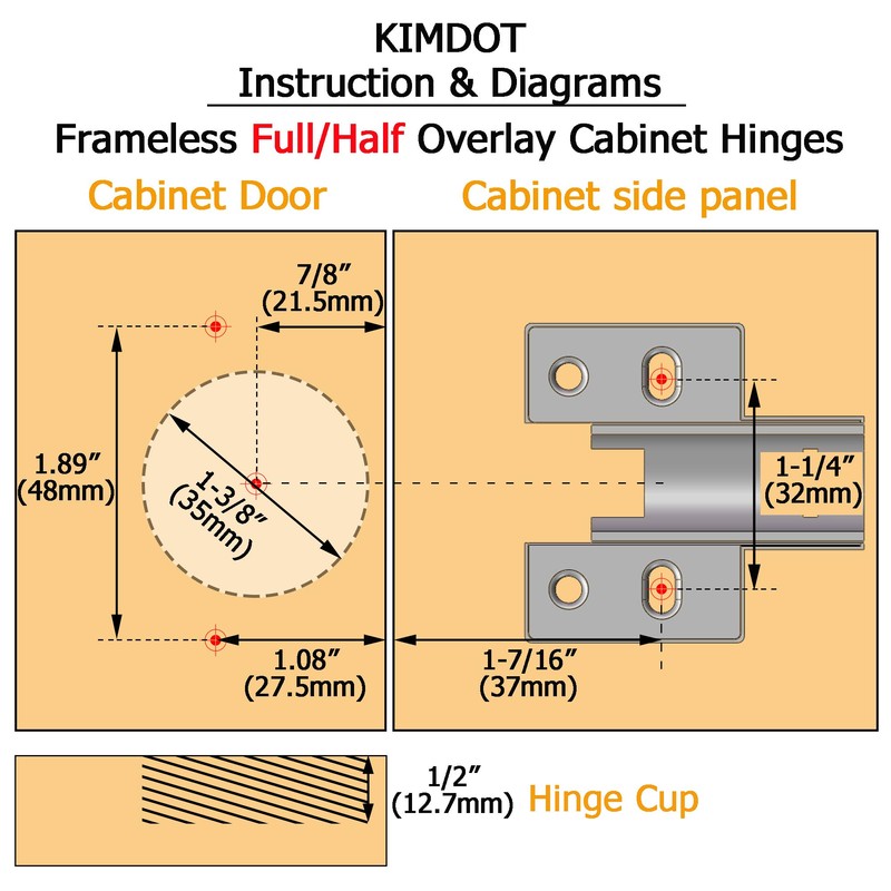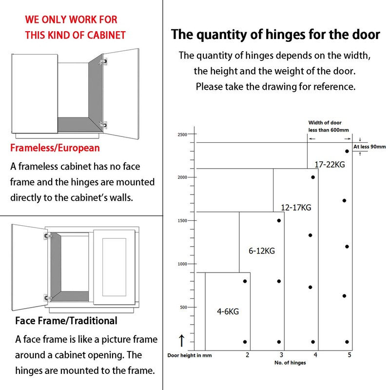 • Fit For American face frame cabinet,105 degree opening angel.Partial overlay.