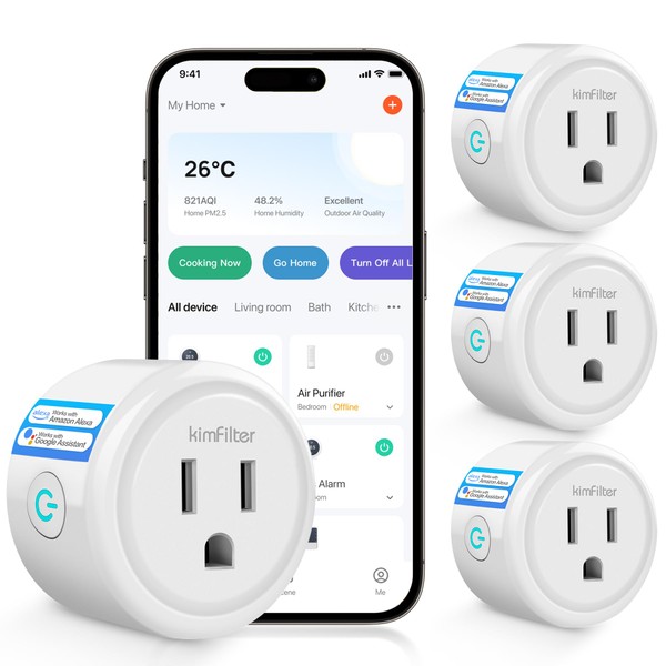 KimFilter 4 PCS WiFi Smart Plug, Wireless Plugs Outlet Compatible with Alexa & Google Voice Assistant, App Controlled Outlet with Timer Function, 2.4GHz Wi-Fi Smart Socket, Smart Plug Timer for Home