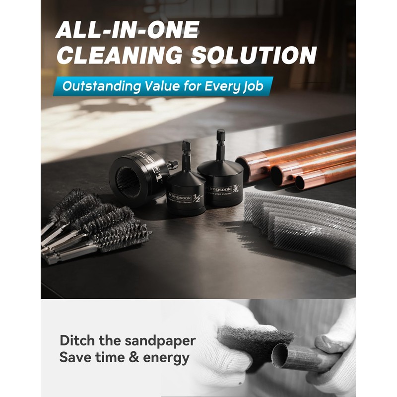 Kimgsoak Copper Pipe Cleaner – A high-quality pipe cleaning tool that efficiently removes dirt, oxides, and debris from both the inside and outside of pipes, ensuring clean surfaces for improved soldering and enhanced pipe performance.