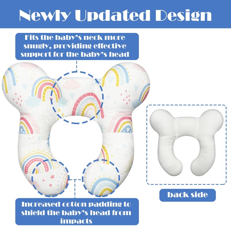 kimitimi Baby Head Support Pillow for Newborn Toddler, Baby Neck Pillow Upgraded Comfortable Sleep Cushion for Car Plane Stroller Pushchair - Rainbow A