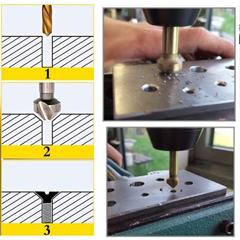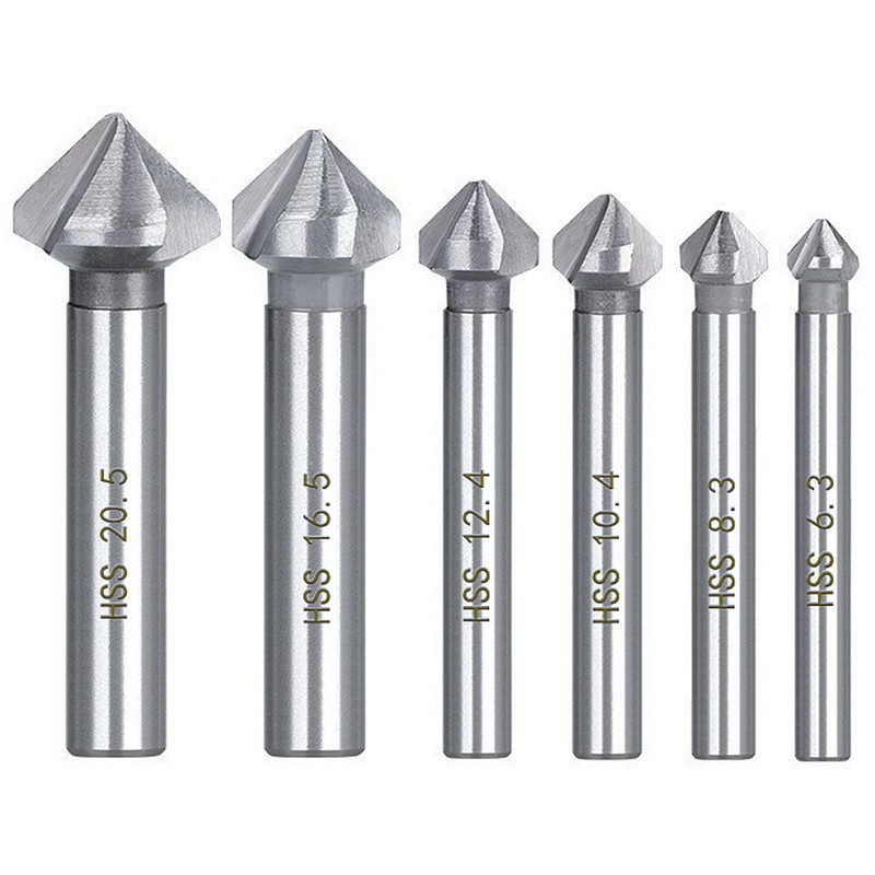 Kimlonton 6 Piece Countersink Countersink Countersink Drill Bit Countersink Puncture Hole Counterbore 3 Blade 90° Chamfer Cutter Drill Chamfer Deburring HSS High Speed Steel Round Shaft 6 Blades (6.3mm, 8.3mm, 10.4mm, 12.4mm, 16.5mm, 20.5mm)
