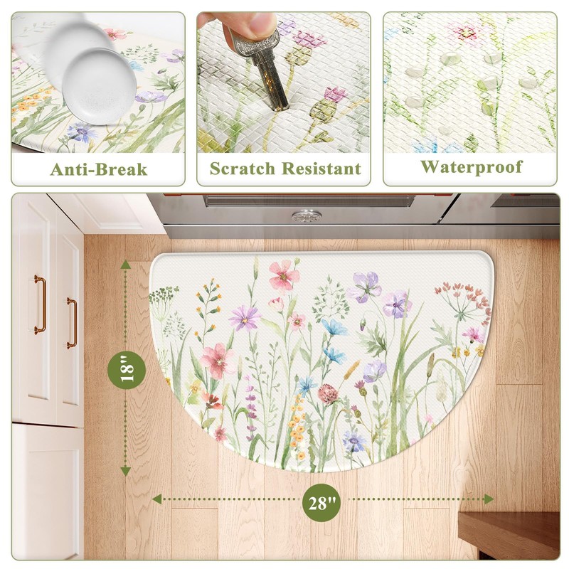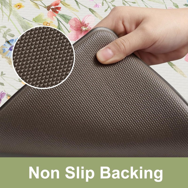 - Versatile: Farmhouse style kitchen rug with floral pattern easily to match your kitchen decor, bright your home.Soft thick foam provides ample support for standing in kitchen sink, laundry room, office, bathroom, dinning room, or any other high-traffic area