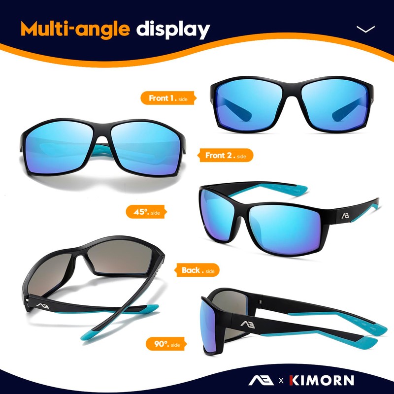 kimorn Polarized Sunglasses for Men's Sunglasses Fishing Driving with UV Protection Running Cycling (Black frame/Blue mercury lens)