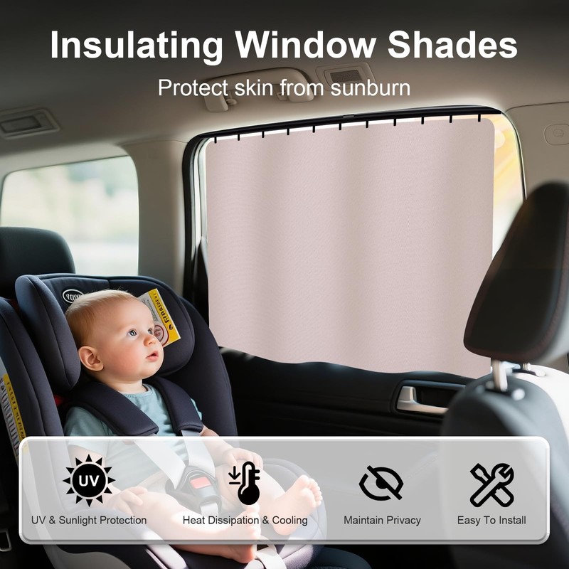 KIMOWOW Car Window Shade for Baby, Back Window Covers,Pink