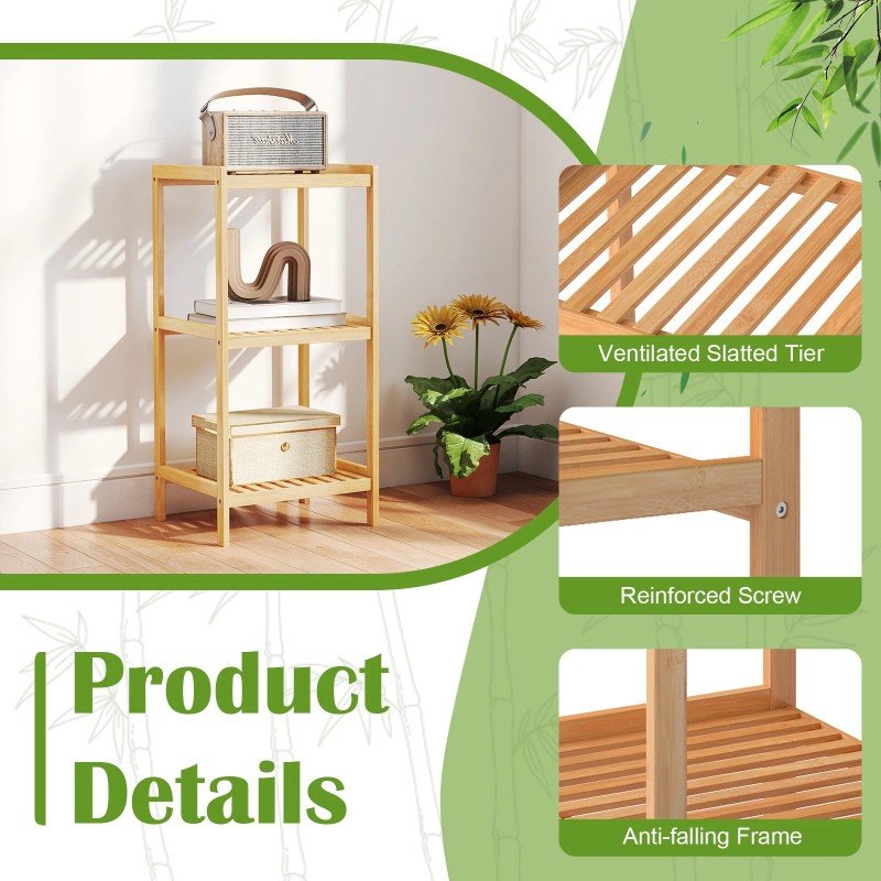 Sturdy Structure: The shelf features a well-engineered design that ensures stability. The solid bamboo construction and the layout of the slatted shelves can support 22lbs weight for each shelf, allowing you to store various items with confidence.