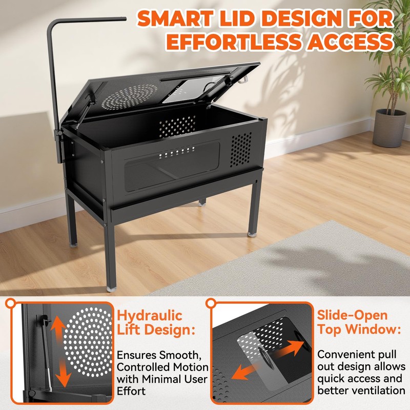 • Effortless Hydraulic Lid: Lift the heavy-duty metal top with a single finger! Smooth hydraulic rods make feeding, cleaning, and chick checks effortless.