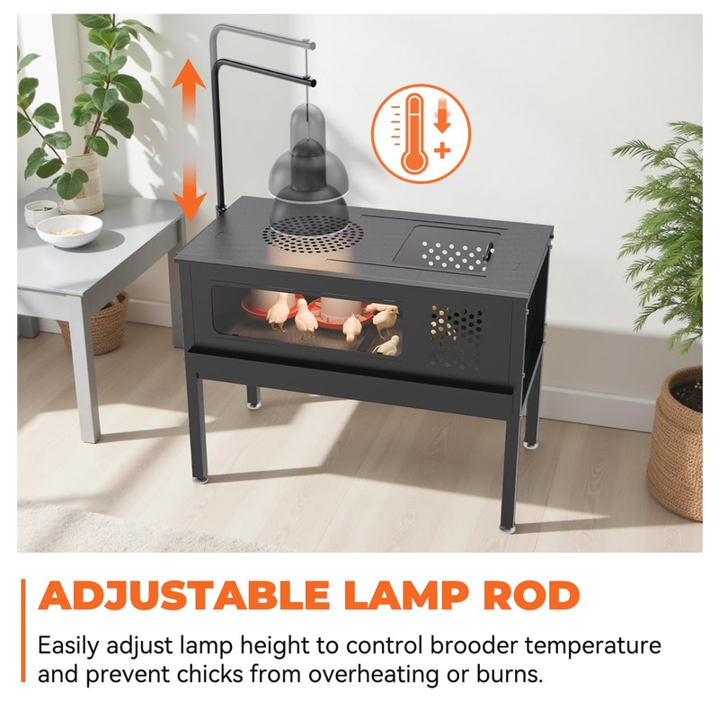 • Tool-Free Adjustable Heat Lamp Mount: Slide up/down to set perfect chick temperature as they grow. No tools needed. Fits standard lamps (lamp not included).