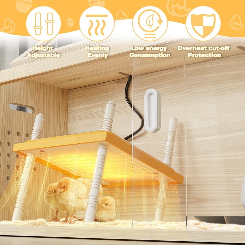 - Upgraded Pro-Grade Heat Plate- Height-adjustable radiant panel bathes up to 15 chicks in gentle, hen-like warmth that stays focused on their bodies—no scalding hotspots, no dangling bulbs, and zero fire risk. It sips power compared with traditional heat lamps, and the dark-friendly heat lets chicks rest longer and grow 26 % faster.