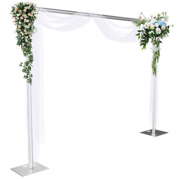 Kinchoix Pipe and Drape Backdrop Stand 8ftx10ft Adjustable Background Support System Heavy Duty Background Stand for Wedding Banquet Decorations Silvery