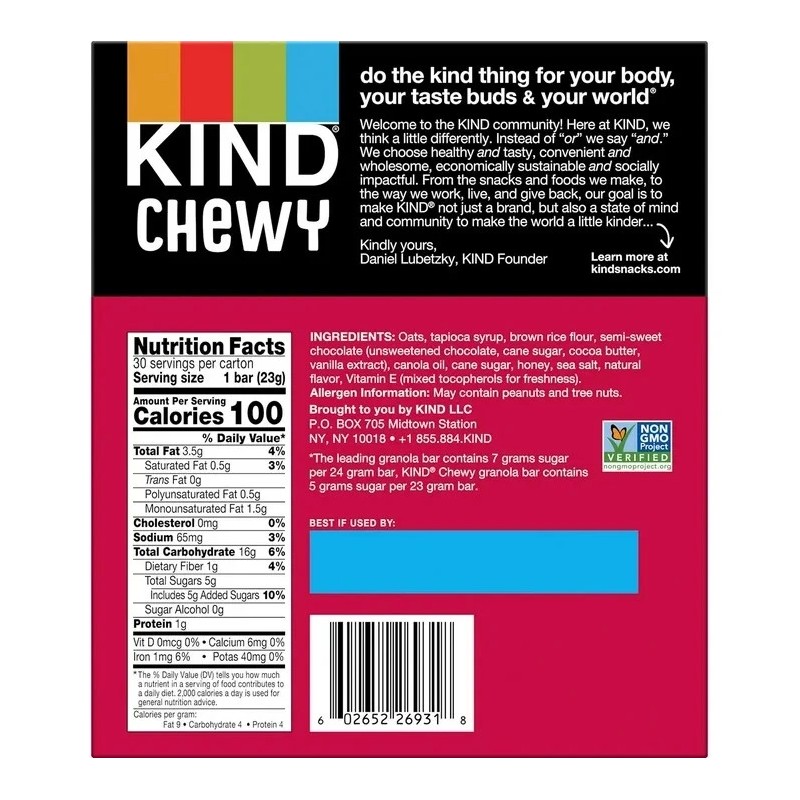 KIND Kids Chewy Chocolate Chip Bars blend whole grains and real chocolate chips to create a chewy, chocolatey snack kids love. You’ll appreciate that they’re: