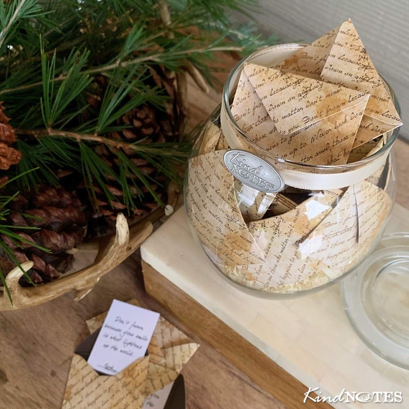 Surprise someone with a touch of mystery, a handful of fun and a load of thoughtfulness! Each KindNotes starts with a beautiful keepsake jar that is filled with 31 mini decorative envelopes, each carrying inside its own special message for your recipient to enjoy in their own way, as often as wanted. KindNotes can be given to friends, family, and loved ones -- even employees and co-workers -- as a way to brighten their day and warm their hearts, especially on the not-so-good days when they need a little pick-me-up. Words have a tremendous amount of power, and sending a gift that can be read again and again is a reminder that someone is thinking about them. KindNotes are available in a variety of collections for every holiday, meaningful moment, and gift-giving occasion. See below for more details.