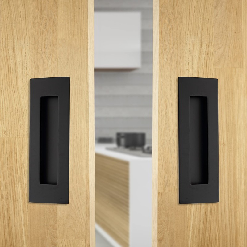 - APPLICATION: Flush pull handle can be used for barn door, sliding barn doors, pocket doors, sliding closet door, cupboard, bifold door, french door. Also sutibale for farmhouse,furniture, cabinets, and kitchen applications.