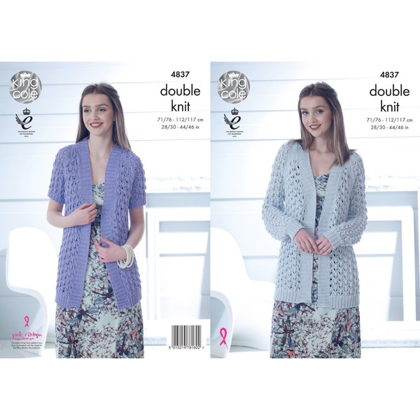 King Cole 4837 Knitting Pattern Womens Long & Short Sleeved Cardigans in King Cole Cottonsoft DK
