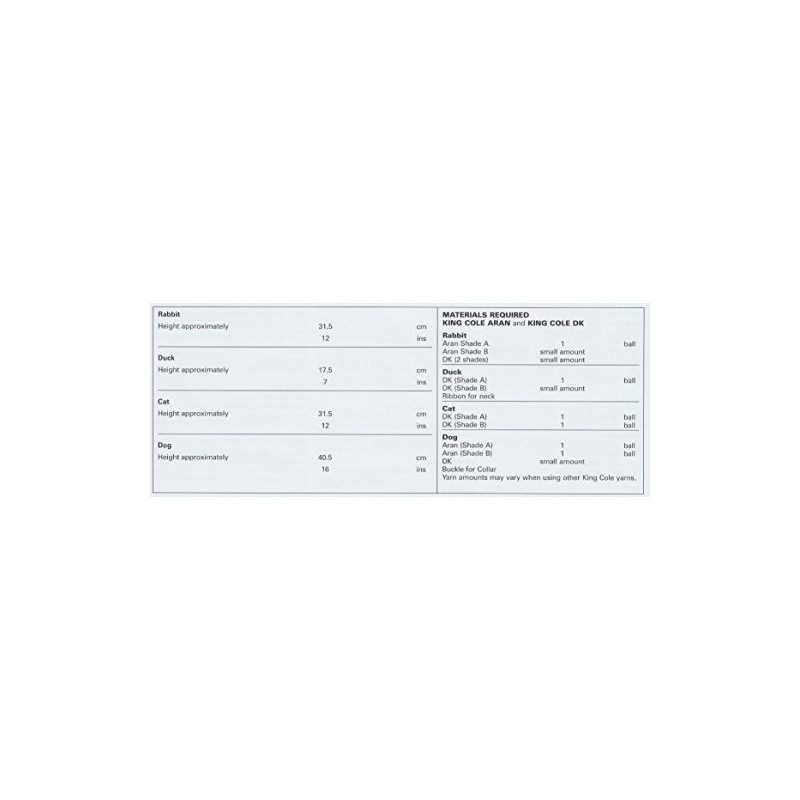 - The pattern gives you measurements to create the heights to approx 31.5cm/12” rabbit 17.5cm/7” duck 31.5cm/12” cat 40.5cm/16” dog.