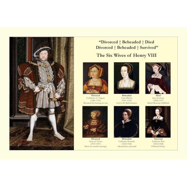 King Henry VIII Six Wives ~ Divorced; Beheaded; Died; Divorced: Beheaded; Survived