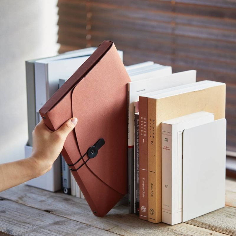 - Material: Body: Washable Kraft paper (approx. 0.04 inches (0.9 mm)); Clasp: (Surface) Genuine Leather, Elastic Band, Grommet (Back) Zipper