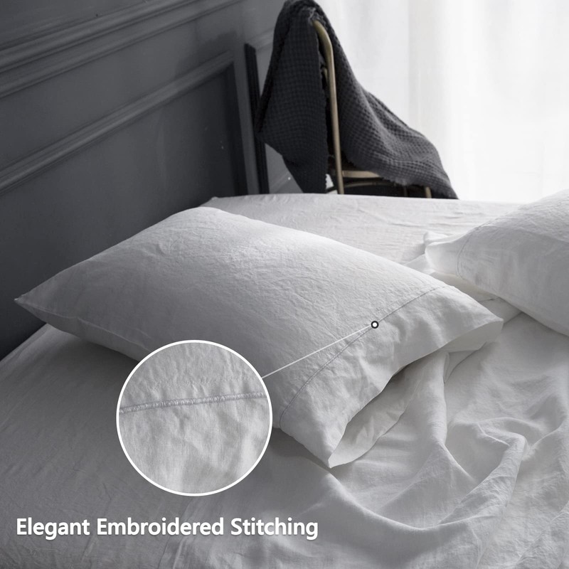 - 【MATERIAL】Made of 100% Premium Quality Euro Flax Fabric with Stone Washed. Use the exquisite craftsmanship stitch with the elegant embroidery border on the cover. Our linen products has been certified by OEKO-TEX Standard 100, which is eco-friendly. The flax pillowcases can bring you a healthier life, durable for a long period.