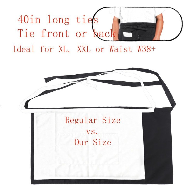 King Mills Unisex Waist/half Bistro Server Aprons with Pockets. Plus Size Apron XL XXL or Waist W40+,extra Large and Long, Black, Plus Size