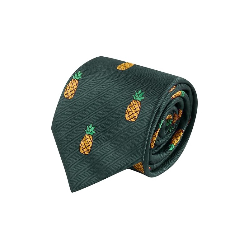 King & Priory Pineapple Dark Green Herringbone Embroidered Tie