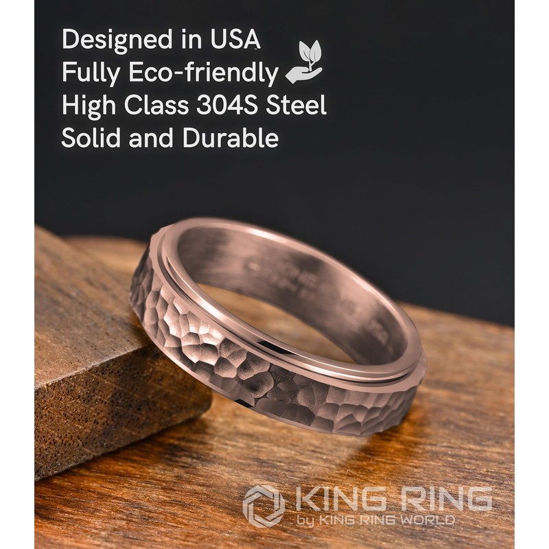 King Ring 6mm Spinner Hammered Ring – Shining Fidget Ring for Stress Relief Stainless Steel Spin Rotating Ring for Men & Women K39V2 – Rose 8