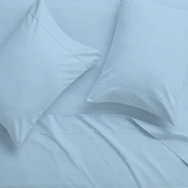 King Size Sheets - 400 Thread Count 4 Pc King Sheets, Long Staple Cotton King Bed Sheets, Breathable King Sheet Sets, Hotel Sheets for King Size Bed 15" Deep Pocket King Sheets (Light Blue Solid)
