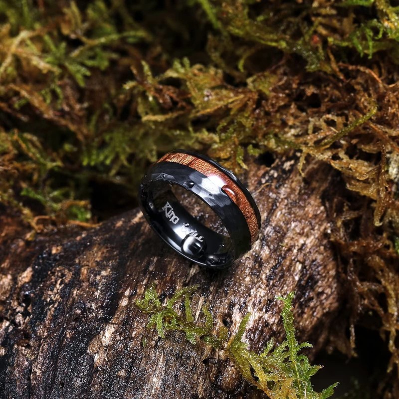 - ✔️UNIQUE DESGIN: Black Hammered Titanium Ring Center Inlaid Wood Wedding Band for Men, hammer and wood inlay perfect combination.