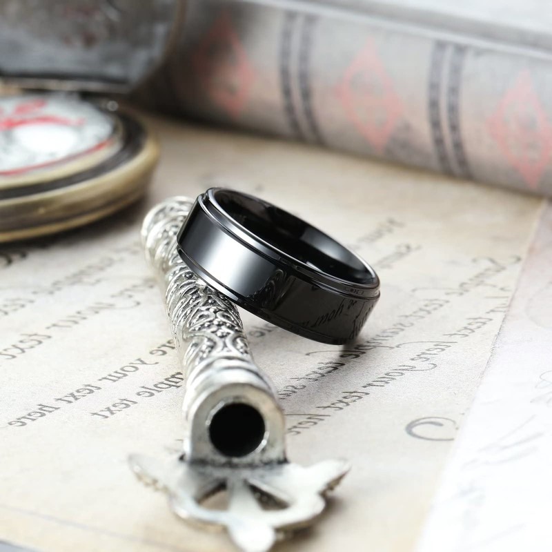 - CLASSIC AND TIMELESS DESIGN: 8mm Black Tungsten Ring for Men and Women Step Edge and High Polish Finish Surface, classic never goes out of style.
