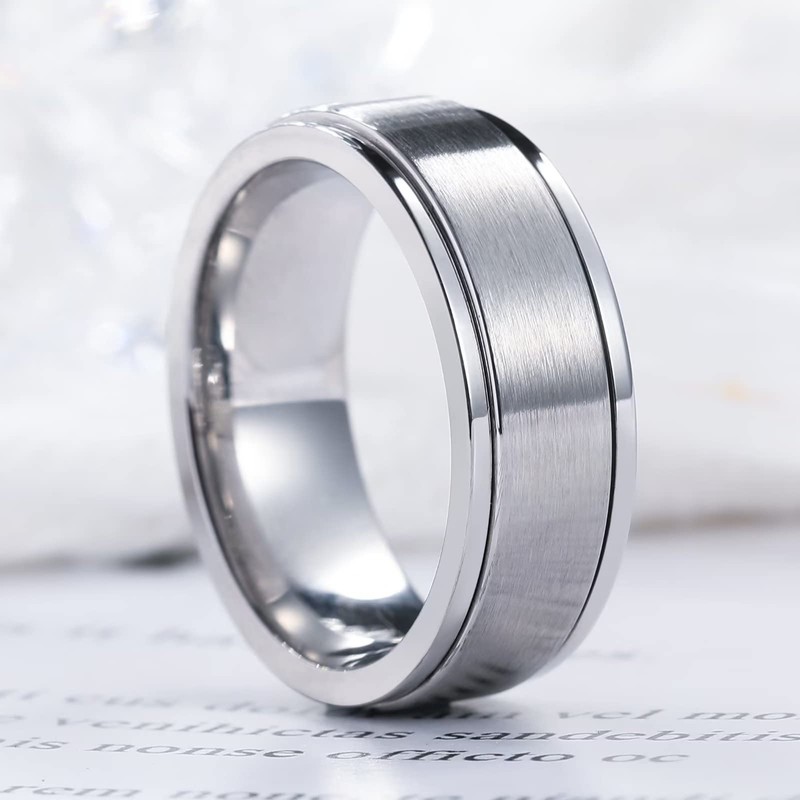 King Will 8mm Stainless Steel Spinner Ring For Men Women Stress Anxiety Relief Ring Fidget Ring For Unisex Adults Teens Brushed Surface Comfort Fit 14
