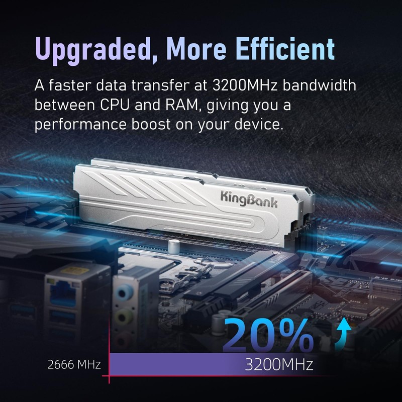 KingBank Computer Desktop Memory Ram DDR4 16GB(2x8GB) 3200MHZ CL16 1.35V with Heatsink for PC Gaming/Office/PS,Silver