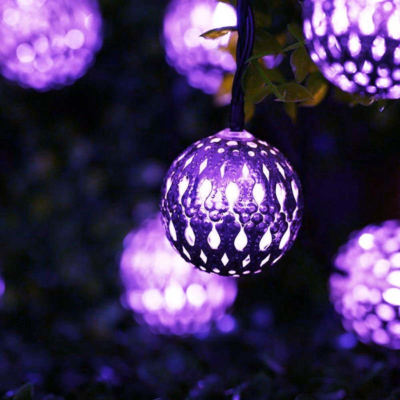 KINGCOO Silver Moroccan Orb String Light, Waterproof 20LED Goble Lantern Solar Dazzling Moroccan Fairy Light with 8 Mode Ambiance Lighting for Outdoor Garden Yard Party Christmas Decorations (Purple)
