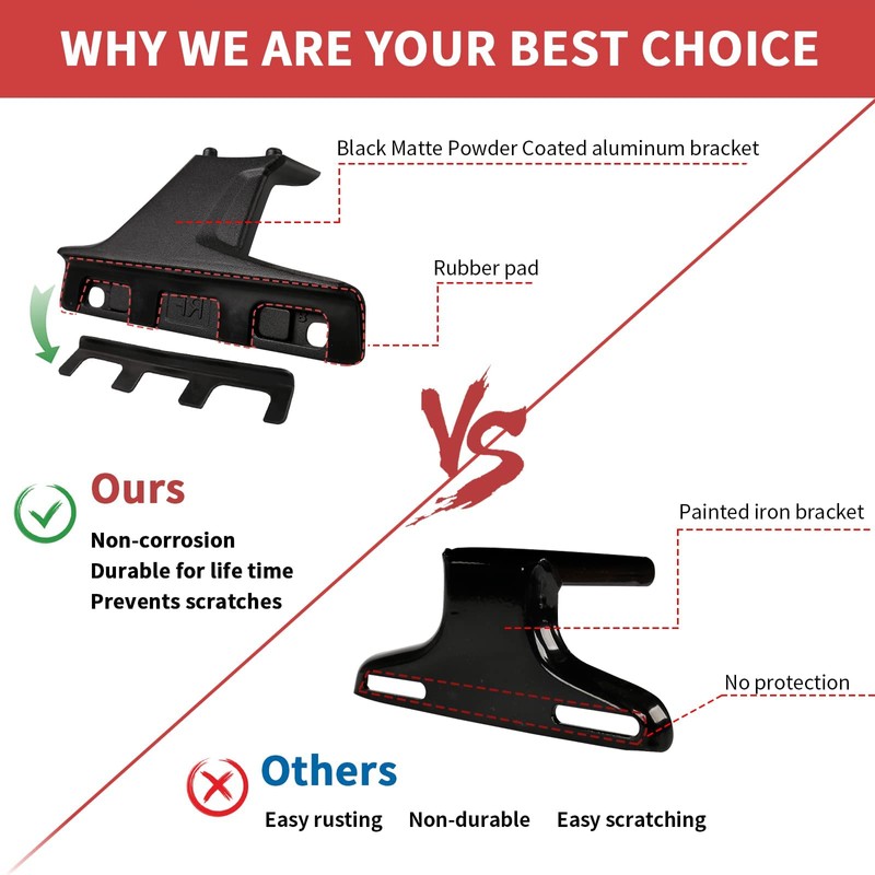 - 【Stronger bar ends】Brackets are made from high grade aluminum,which add to extra security and durability. Heavy-duty clamping Design ensures that it is securely fastened to the existing side rails.