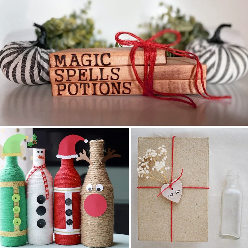 【Multi-Purpose Twine】 Red string twine can also be used in photo display, hanging gift tags/cards, can be as Christmas tree twine for hanging decorations, and decorating various bottles, etc. Look very nice and fantastic.