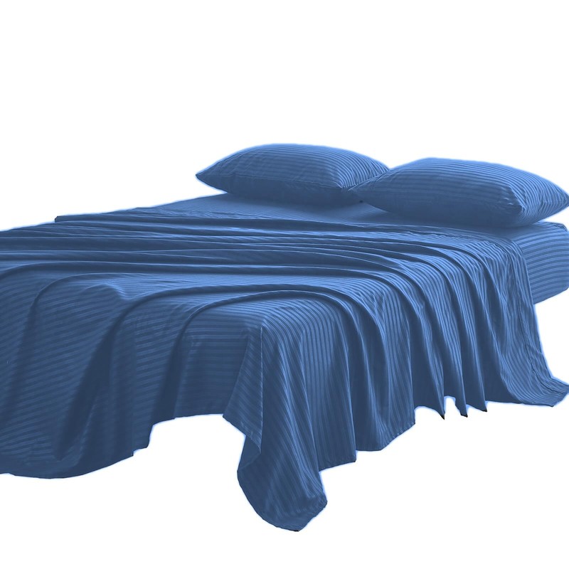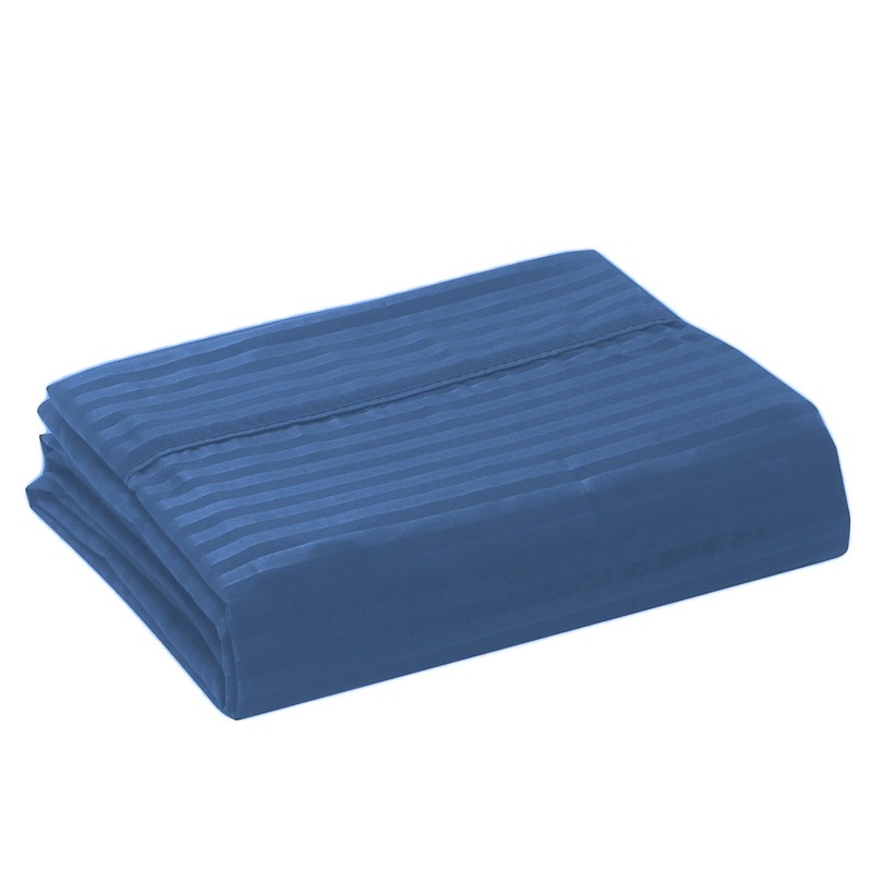 Kingnex Oversized King Flat Sheet 132x110 with Striped Pattern for Extra Wide Tall King or Cal King Bed Durable Soft Brushed 1800 Microfiber Top Sheet Only Navy