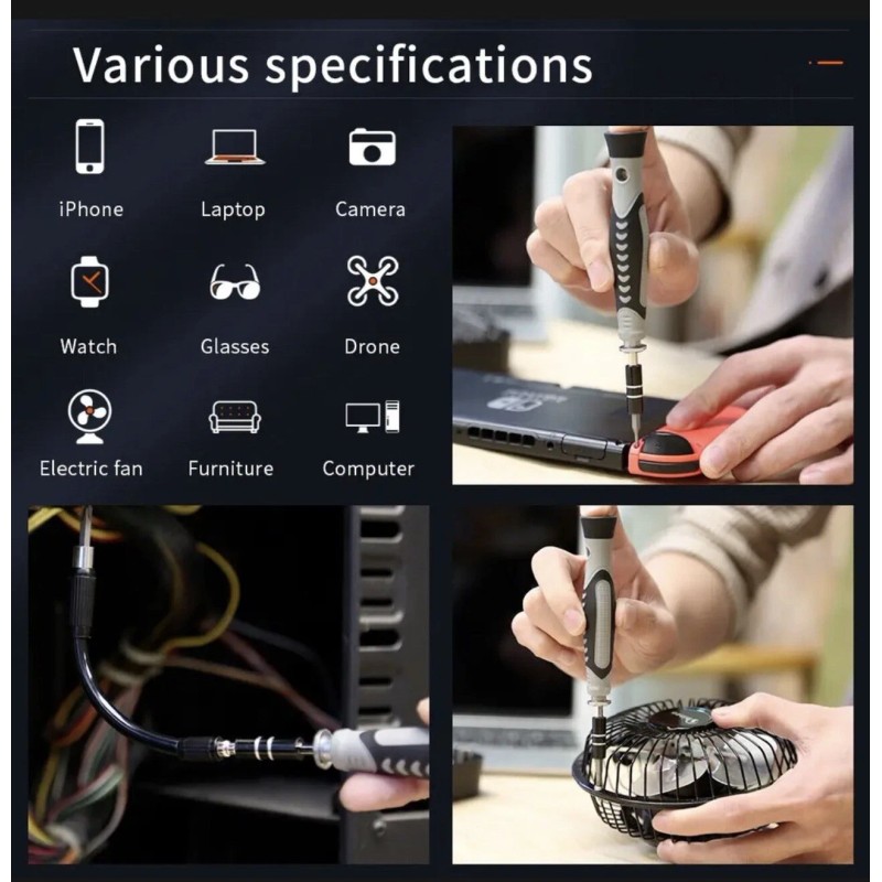 - ใ๐๐๐ ๐ข๐ง ๐ ๐๐ซ๐จ๐๐๐ฌ๐ฌ๐ข๐จ๐ง ๐๐๐ซ๐๐ฐ๐๐ซ๐ข๐ฏ๐๐ซ ๐๐ข๐ญใ130 in 1 professional screwdriver repair tool kit is designed by thousands of repair data refining, including the most common 101 magnetic screwdriver bits and 21 pieces of necessary tools. Electronics precision screwdriver set is designed for repairing cellphones, PC, laptops, computers, Nintendo switches, game consoles, watches, glasses, cameras, Xbox, other electronic devices