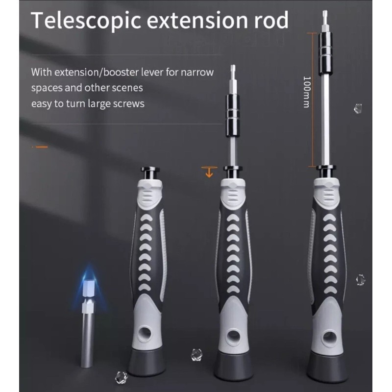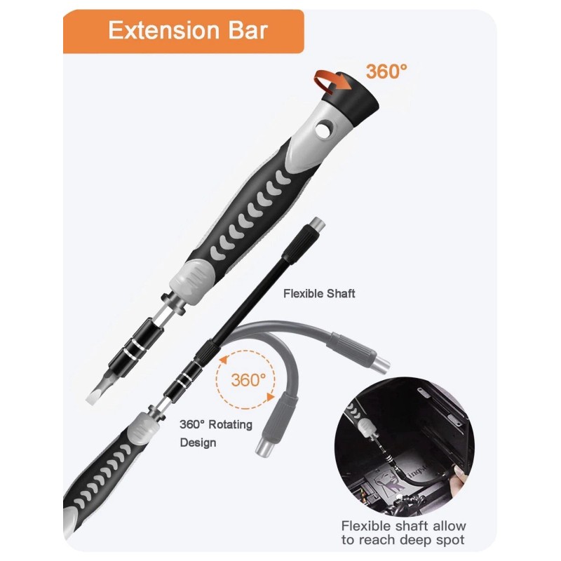 - ใ๐๐ฎ๐ฆ๐๐ง๐ข๐ณ๐๐ ๐๐๐ฌ๐ข๐ ๐งใErgonomic and no-skid design handle, it is comfortable to hold even for the long-time use. Interchangeable precise manual tool set is equipped with a hard extension shaft and a flexible extension shaft which is easy to be extended to a narrow place where the handle cannot enter