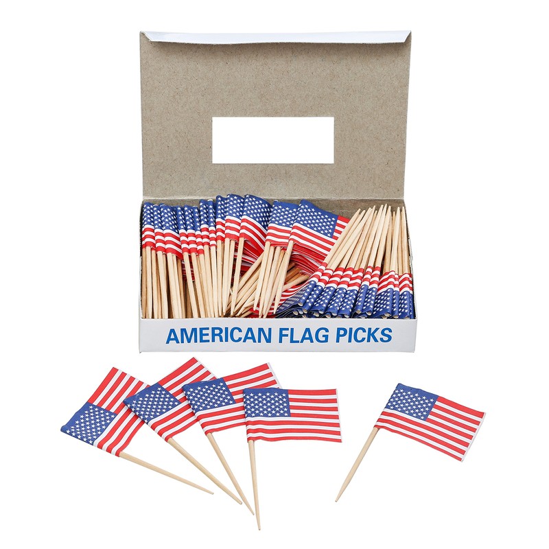 KingSeal American Flag Toothpicks, 2.5 Inch - 10 Packs of 144 per Case, US Flag Picks for Sandwiches, Appetizers, Cupcake Toppers, and More!