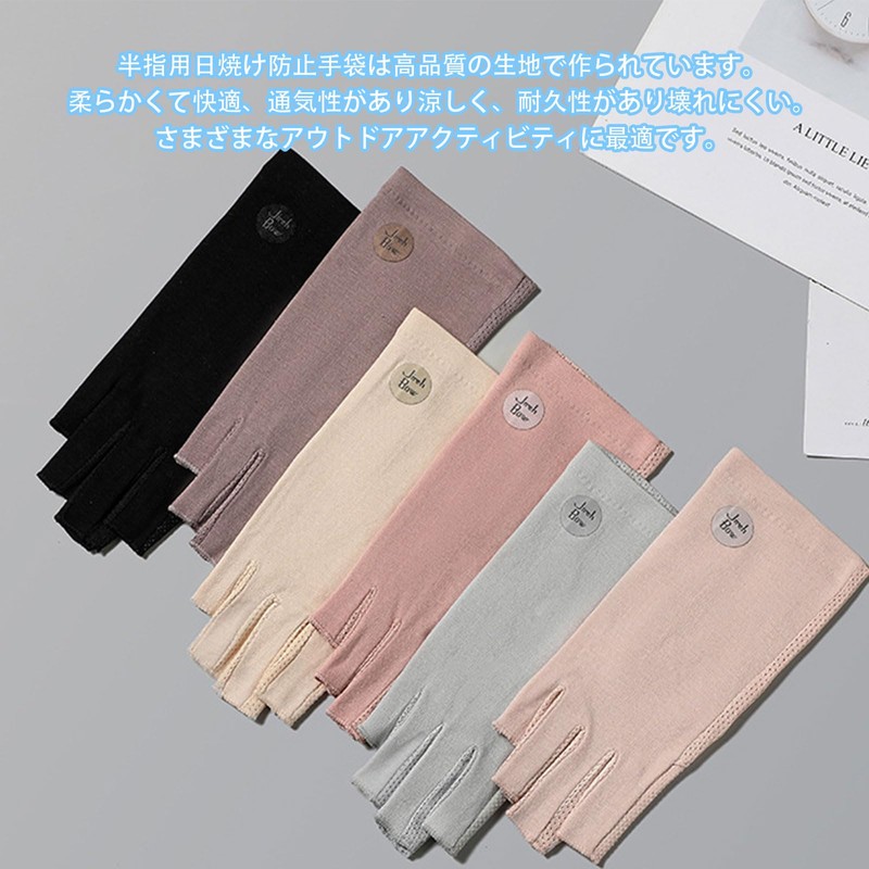 [Kingsie] レディース手指なし手袋 半指手袋 UVカット レディース 指なし 半指 紫外線対策 スマホ 日焼け止め 運転 作業 自転車 コットン 春夏秋 (D ブラック)