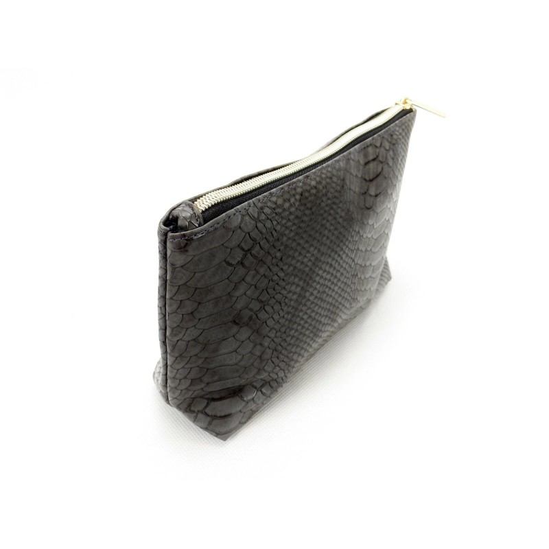 Kingsley Cosmetic Travel Bag, Zippered, Faux Reptile, Gray, Rectangular Design, # TC-178
