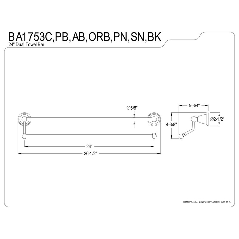 Kingston Brass BA1753AB Heritage 24" Dual Towel Bar, Antique Brass