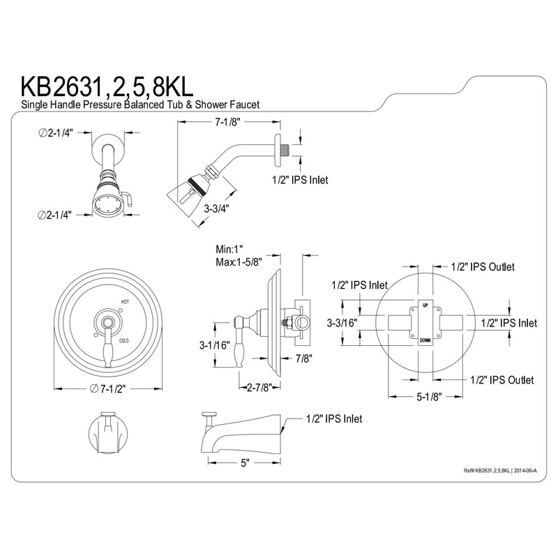 Kingston Brass KB2632KL Naples Tub and Shower Faucet, Polished Brass