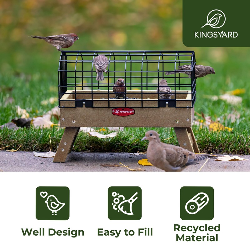 - Keeps Seeds Dry & Fresh: Feeding tray is elevated 6 inches off the ground with metal mesh flooring; Provides excellent drainage to keep seeds fresh and dry