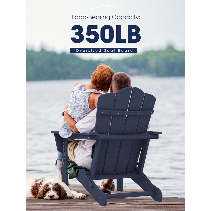 KINGYES Folding Adirondack Chair, Relaxing Stackable|Arm Rest|Ergonomic HDPE All-Weather Adirondack Chair, Navy