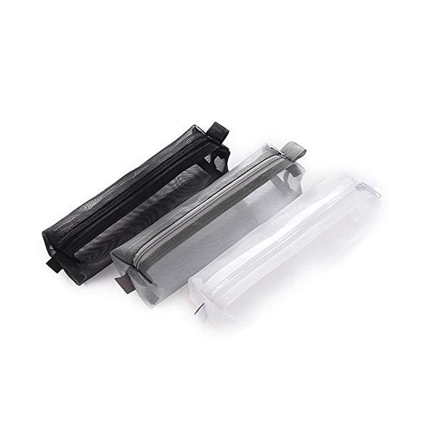 **✔ Material Introduction:** \- 100% Nylon; \- Lightweight, Sturdy and Durable; \- Easy to clean and quick-drying. **✔ High Quality:** \- Zipper: One of the consumables so we selected more reliable Supplier; \- Mesh Material: Mesh make it breathable, we choice the thicker one in order to keep the shape and better protection. **✔ Multipurpose Use:** \- Organize your travel necessities; \- Hold your stationery orderly; \- Keep your personal belongings secure. **✔ Specifications:** \- Quantity: 3 x Zipper mesh bag; \- Bag Size: 7.5" × 1.8"×1.8”, \- Colors: 3 Color.