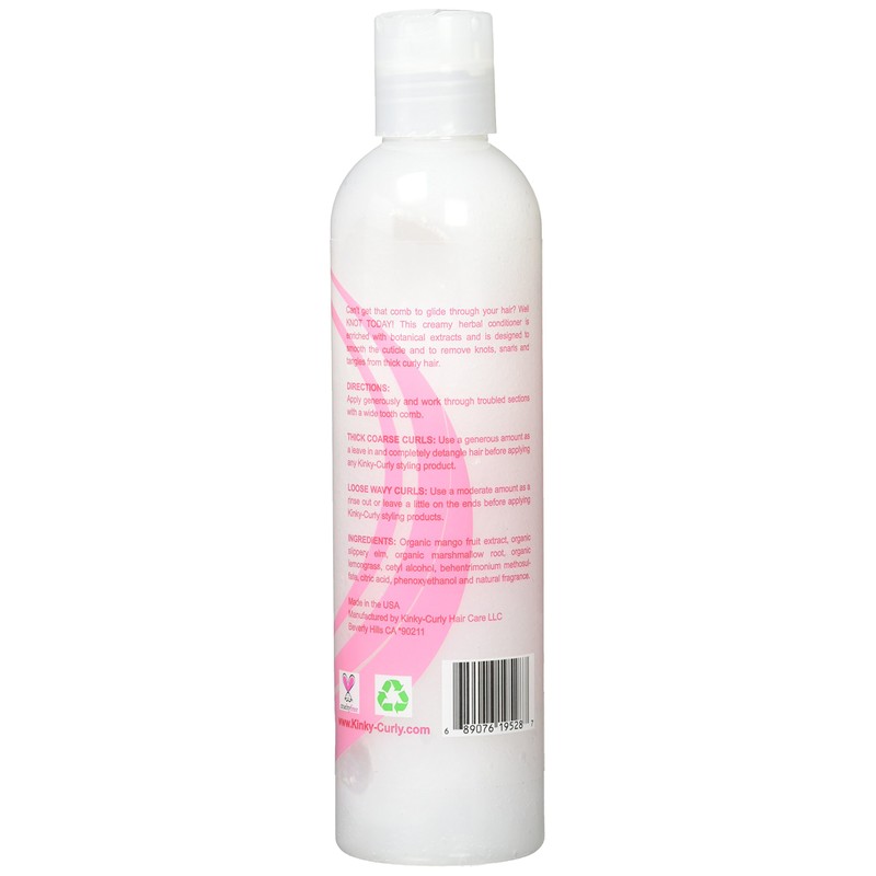 Creamy Conditioner for Naughty Knots A creamy and herbal Kinky Curly Knot Today Conditioner helps you to smooth the cuticles and remove knots, tangles and snarls painlessly. This conditioner helps you to covert a nightmare into a sweet dream. Helps to removes tangles and knots painlessly Helps to smoothen cuticles Creamy and herbal conditioner Kinky Curly Knot Today Conditioner is an good herbal product that gives you the liberty to look fashionable. Just For You: For curly, wavy and thick hair A Closer Look: This conditioner straightens your knots after removing your hair from extensions or braids. For thick curly hair, use this conditioner as a leave-in and for wavy hair use it as a regular conditioner. Get Started: Apply this conditioner after hair wash. To detangle the knots, use a wide toothed comb. Apply the conditioner in the bath shower, if you are using it as a leave-in, after a hair wash. Rinse lightly and distribute the conditioner evenly