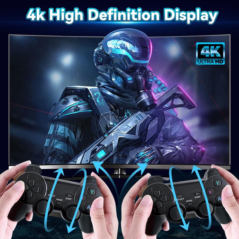 - With dual wireless game controllers, supports 4K Ultra HD / 1080P / 720P TV video output.